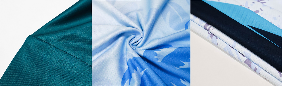 เนื้อผ้า ระบายอากาศดี น้ำหนักเบา ยืดหยุ่นกำลังดี สวมใส่สบาย พิมพ์ลายคมชัด เหมาะกับเสื้อกีฬาและเสื้อกิจกรรม